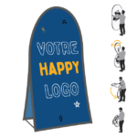 Sa double face vous permettra d’accrocher le regard et vous pourrez afficher votre marque ou vos partenaires.