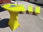 Avoir un mange debout personnalisé, c’est une évidence pour assurer l’accueil quelque soit l’occasion: Salons professionnels, mariages, marché…